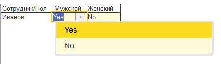 Например, в отчете есть два связанных поля, которые принимают булевы значения: