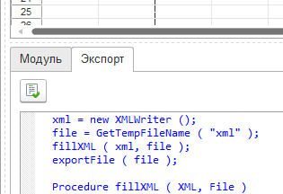 Если переменная ExportData заполнена не будет, система выдаст пользователю сообщение об отсутствии данных для выгрузки.