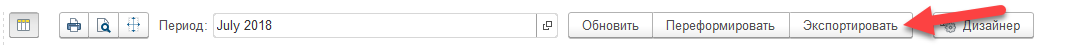 На пользовательском уровне, для отчетов, поддерживающих выгрузку в файл(ы), становится доступной кнопка Экспортировать: